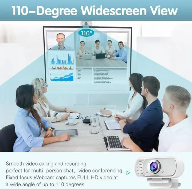 110 Degree Wide Angle Webcam with Microphone. Fixed focus Webcam captures Full HD video at a wide angle of up to 110 degrees. Giving you an unparalleled perspective for a wide variety of conditions when you live streaming, video chatting or recording. Build-in auto noise reduction Mic makes sound purer and clearer, and pick up your voice even at 3m distance. Also Easy to turn off the w