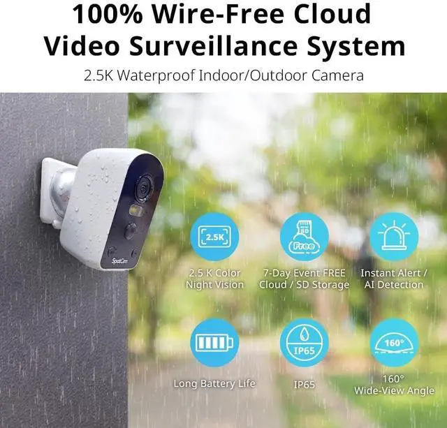 Built-in microphone and speaker for seamless two-way communication. ^^ [Magnetic mount, Dual Backup, Multi-User Sharing] Features a versatile magnetic wall mount for easy angle adjustment. Supports up to 256GB local storage for disconnection back up. Share viewing access with customizable permissions for other accounts. Compatible with various devices, including smartphones, tablets, and web browsers on computers. ^^ [Made in Taiwan and Cloud Zero Charge Recording] Developed and manufactured in Taiwan, local cloud storage for secure image storage. Users can trust our product for a worry-free experience, and SpotCam offer a lifetime of 7-day cloud event loop recording with no additional fees required.