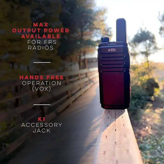 FRS Walkie Talkies --- The FRS-B1 are license free FRS walkie talkies programmed with all 22 FRS channels used by FRS radios. All 22 FRS Channels are pre-programmed and able to be customized for your unique application needs. The radios support all 260 DCS and CTCSS privacy tones (up to 5720 channel combinations) making them compatible with any other FRS radio. The FRS-B1 allows quick monitoring of all traffic on a channel with the monitor key, and also includes a built-in flashlight. ^^ Rugged and Versatile --- The FRS-B1 is IP54 weather resistant, meaning it can reasonably be used in all weather situations.