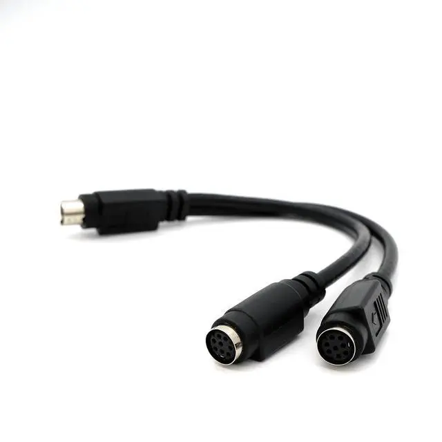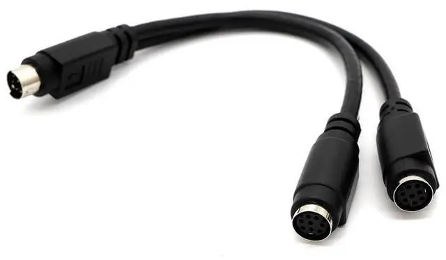 One male MiniDin8 to two female MiniDin8 splitter. This splitter can be used to allow simultaneous connection of the transceiver to a digital modes interface and power amplifier or antenna tuner. Refer to the pinouts of the individual devices to avoid multiple devices trying to drive the same line. Multiple serial TX lines, multiple audio outputs connected. connects all 8 lines one-for-one between all three ends about 9" end-to-end shielded for RFI protection premium quality materials and craftsmanship