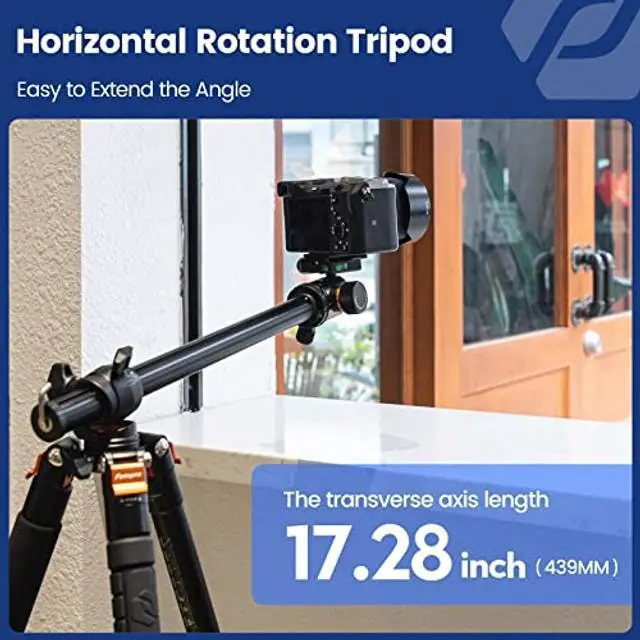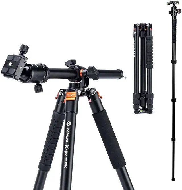 Horizontal Tripod: The Fotopro X-Go HR Pro camera tripod can be easily switched to horizontal tripod mode by releasing the knob. The 17.3" center shaft rotates 360 and supports vertical movement, perfect for product photography, food shots, overhead shots, panoramic landscapes, cityscapes, macro, tilt shots, and time-lapse shooting ^^ 2-in-1
