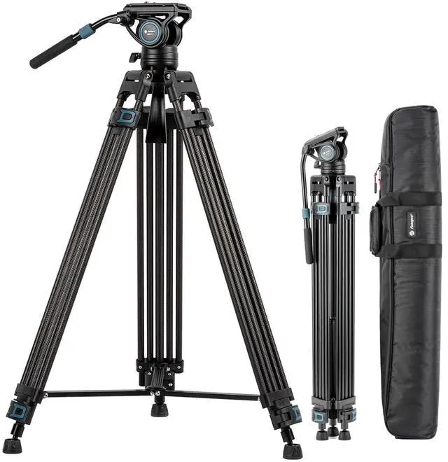 Carry: Despite its sturdy construction, the camera video tripod is lightweight, weighing just 8 lbs. It can be folded down to 35.03 and stored in the included tripod bag for easy transport and storage