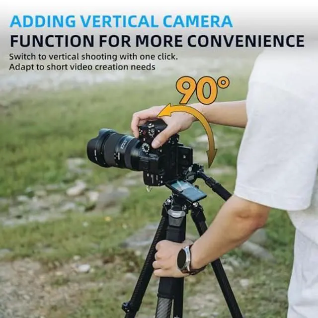 Vertical Shot: Equipped with the Fotopro MH-6A Pro fluid head and handle, this professional camera tripod ensures 360 panning, vertical shooting, and precise tilt adjustments for smooth video capture. Perfect for filmmaking, live streaming, and professional videography ^^ Strong
