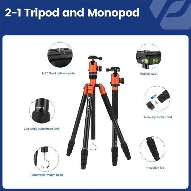 The camera tripod tube is made of aluminum, max load 15kg/33lbs and only weighs 1.57 kg/ 3.46 lbs. For photographers shooting outdoors, this tripod is quite stable. The tripod can support heavy camera equipment and ensure the stability of shooting. The aluminum camera tripod is more resistant to harsh weather conditions than other metals or plastic, making it ideal for outdoor photography.