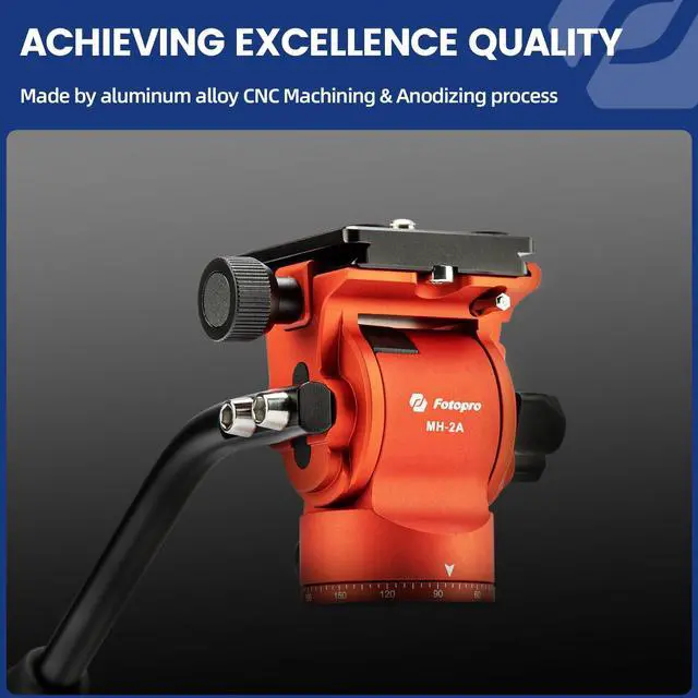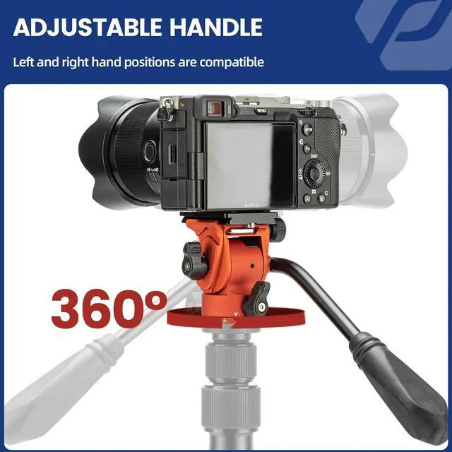 Durable & StableFotopro professional video head is made of aluminum alloy with anodized surface and CNC process, max load up to 6.61 lbs, which can shoot for long periods of time and challenge more difficult environments. ^^ Pan and Tilt AdjustmentThe fluid head tilt damping smoothly, can maintain a uniform speed to transport the mirror shooting. With the handle, this tripod head can rotate 360 degrees, tilt -55 to 90, to achieve multi-angle shooting. ^^ Adjustable HandleThe tripod head comes with an adjustable handle that allows you to loosen the set screw with a wrench to adjust the handle position for left and right hand compatibility.
