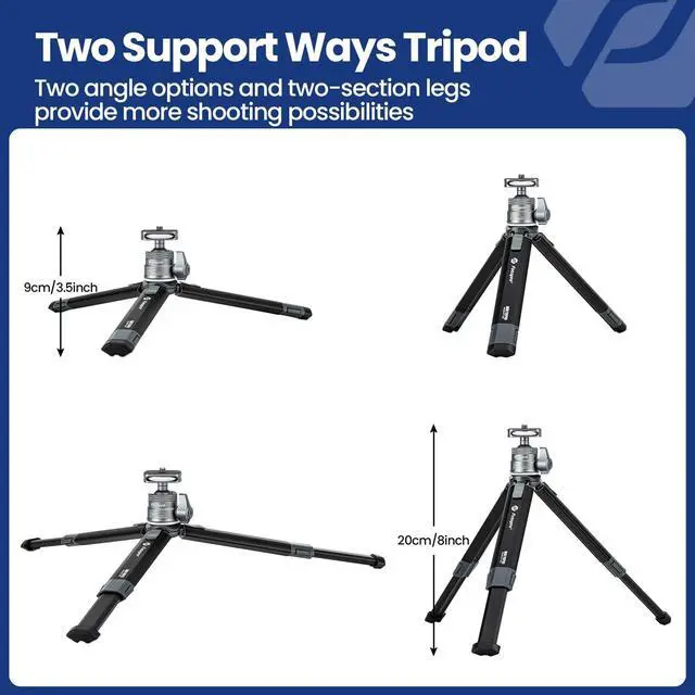 Shooting on the Ground: Extendable professional mini tripod with a minimum height of 3.5 inches, large angle