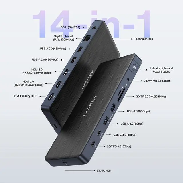 DisplayLink DRIVER NOTEFor the normal operation of this 14-in-1 docking station, please install the corresponding DisplayLink driver version before running your devices; the HDMI 2 & 3 ports only work when the proper driver is installed for your dock