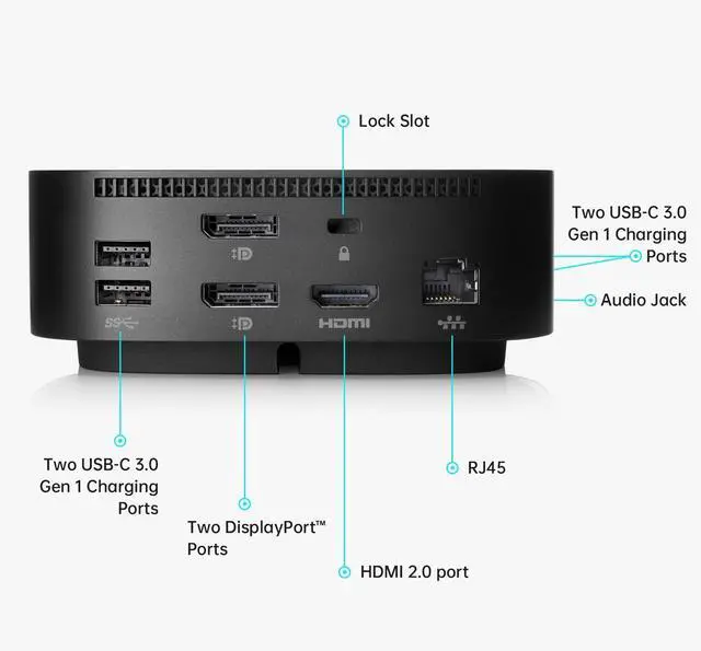 ^^ Compatible: Designed with universal compatibility in mind, this dock works with both HP and non-HP USB-C- and Thunderbolt-enabled laptops (USB-C ports are required to support the three basic functions of power, data transfer, and display output. )