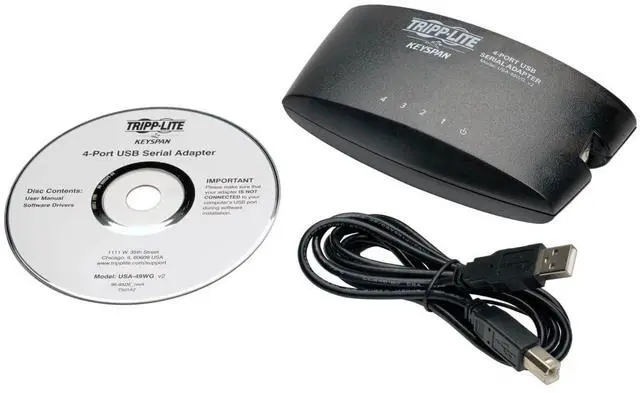 The USB 4-Port Serial Adapter from Keyspan is an adapter box that allows you to connect up to four serial devices to a single USB port. The adapter is ideal for industries that still utilize legacy serial devices, as it allows them to be used with modern computer hardware. It is compatible with both PC and Mac operating systems.