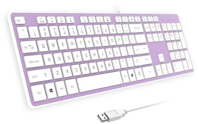B. FRIENDIT Wired USB Keyboard, Comfortable Quiet Chocolate Keys, Durable Ultra-Slim Wired Computer Keyboard (QWERTY) for PC, Windows 11/10/8/7/XP/Vista KB1430 - Purple