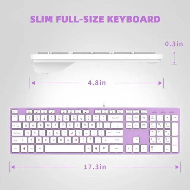 105 Keys Full Size Wired Keyboard With Numeric Keypad & Multimedia Keys , Low-profile Silent keys Make You Enjoy the Comfortable and Whisper Quiet Typing Experience.
