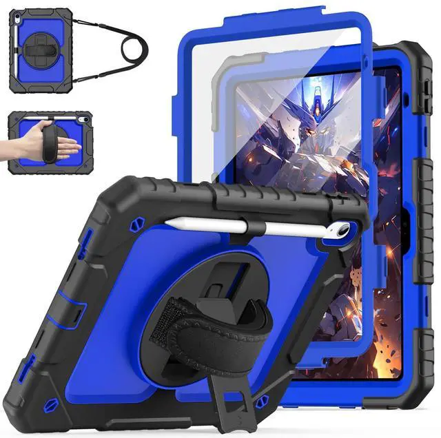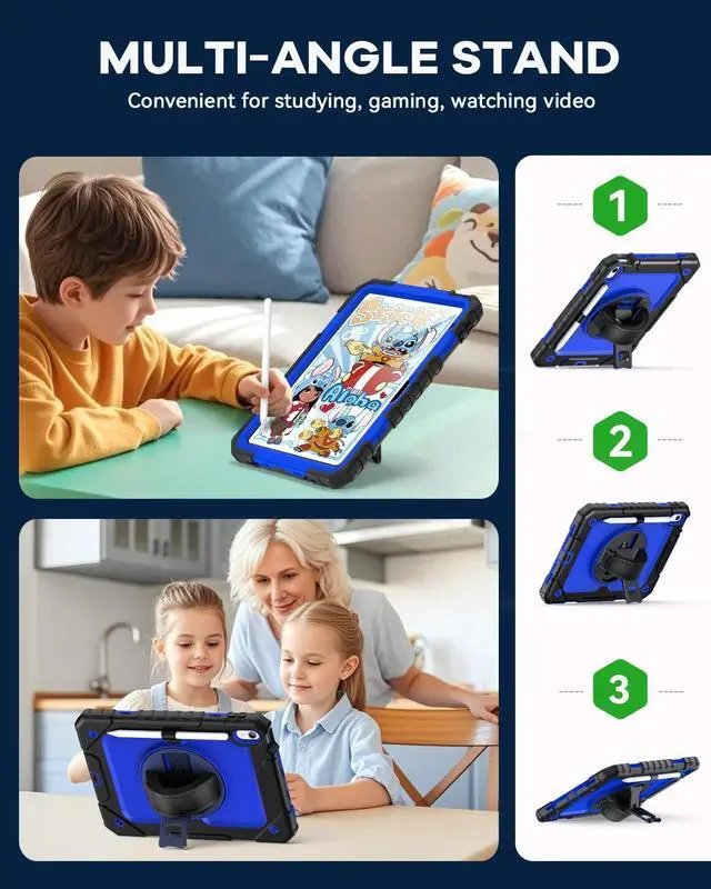 With Shoulder/Hand Strap & Rotating Stand: The ipad 10th case with portable shoulder/hand strap makes your tablet more conveniently outdoors & indoors, such as display your iPad behind car head rest. 360 degree rotating kickstand provides different typing & viewing angles for studying, gaming, watching video, etc.