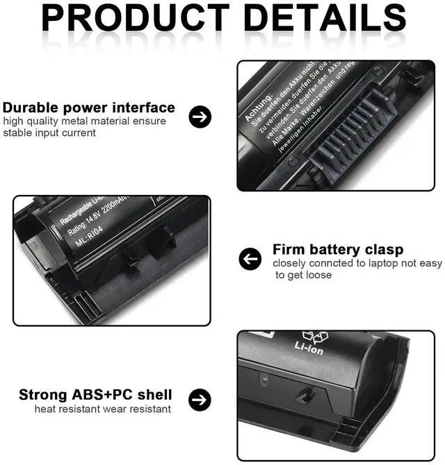 • Fits : HP R104 R106XL P3G16AA HSTNN-DB7B HSTNN-PB6Q HSTNN-LB6Z HSTNN-Q94C HSTNN-Q95C HSTNN-Q97C RIO4 RIO6XL Spare 805047-851 805294001 805047-851 811063-421 Notebook Laptop Battery