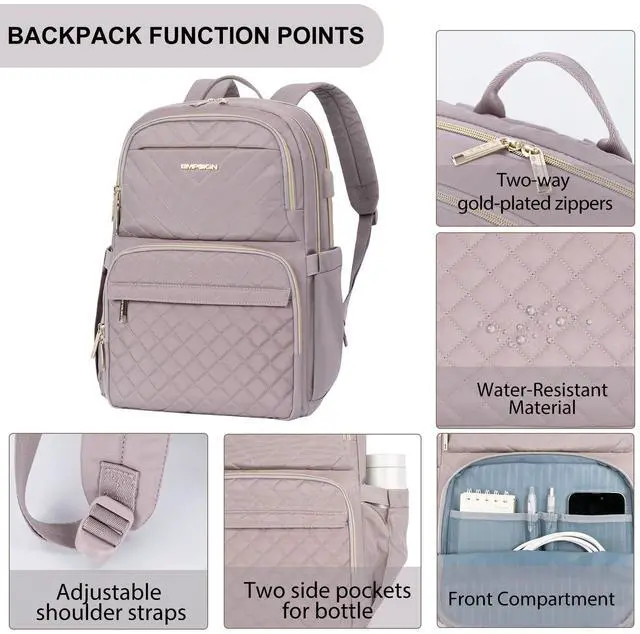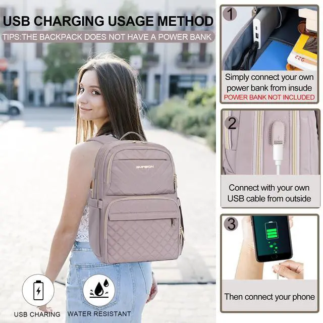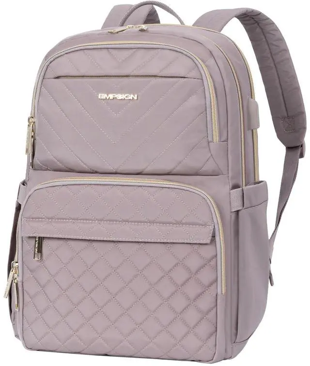 [(Durable and Stylish Women Backpack)] : Empsign laptop work backpack is made of high-quality quilted fabric, with waterproof and wear-resistant advantages. The exterior of the backpack adopts quilting technology, high-quality metal lock, and USB interface design, conveying a classic and fashionable appearance and feeling. The stable bottom of the backpack can better carry the backpack.