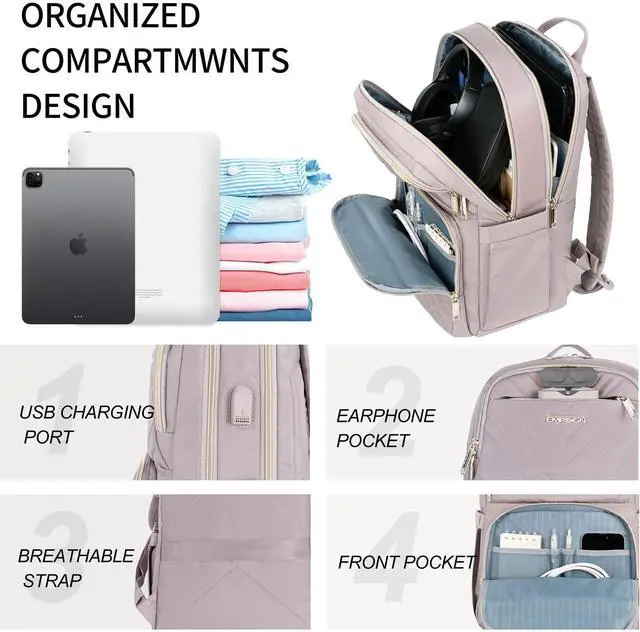 [(Multi Functional Pockets and Large Capacity)] : EMPSIGN laptop backpack Purse has many pockets that can hold different types of items. The backpack features multiple compartments and 15 multifunctional small pockets to keep items organized. The padded pockets of 15.6-inch laptops and iPad pockets provide thick padded sections. The padding design can protect your laptop from accidental impacts and scratches. The large capacity of the backpack can meet your needs in any usage scenario.