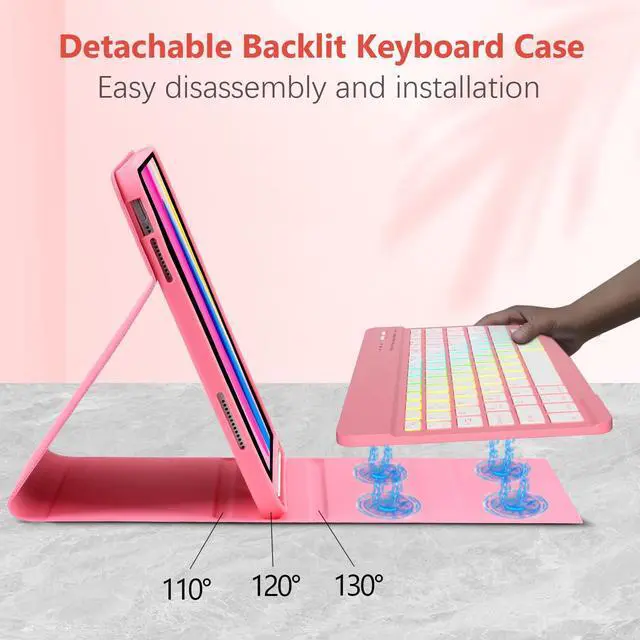 Detachable 7 Colors Backlit Keyboard: Magnetic separation of for iPad 10th generation keyboard case, wireless keyboard can be removed from the case, Type-C charging port; 3 levels of brightness and 7 colors make typing fun and easy, whether in the dark or in bright environments