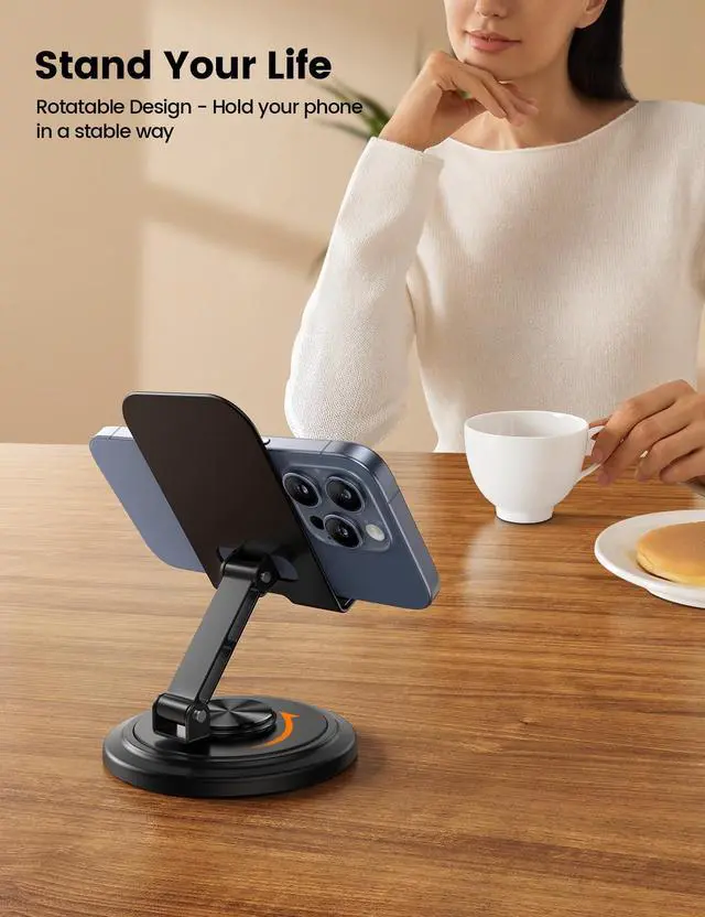 360deg Rotatable - The Lamicall cell phone stand comes with a smooth 360-degree rotating pivot, allowing you to effortlessly adjust to your preferred viewing angle with ease. As an office desk accessories, this cell phone stand for desk is perfect for watching videos, engaging in video conferencing, attending online classes, live streaming, cooking with a digital recipe, enjoying leisure time with movies and Facetime, or sharing content on your screen.