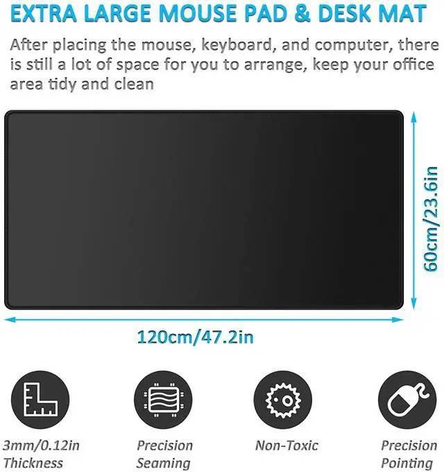 The anti-fraying stitched frame prevents deformation and extends the lifespan and appearance of the extra large writing pad, making it more durable. Our 0.12"/3mm thick desk mouse mat gives your wrists and hands ease, which offers comfortable gaming or working.