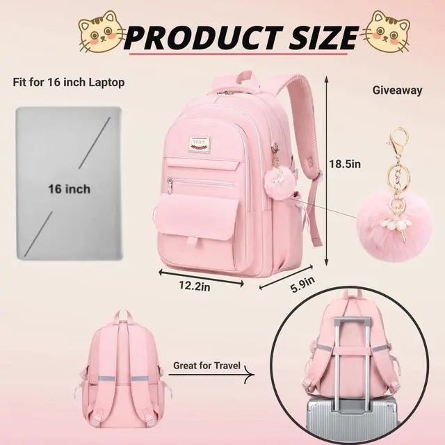 [(Large Size & Gift)] : The size of back pack is 18.5"x12.2"x5.9"(H*L*W), Weight:1.65 LB. The laptops bag with padded compartment sleeve fit for 13.3,14,16 inch tablet. This women book bag also along with fluffy ball key pendant as gift makes the bags more fashionable and unique.