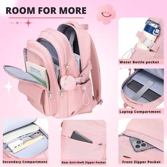 YOJOY Laptop Backpack 15.6 Inch College Backpacks for Women, School Backpack for Girls,Students Aesthetic Anti Theft Travel Daypack Large Bookbags Middle High School Back Pack(Pink)