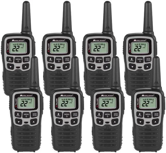 This value pack includes eight Midland T51BLK two way radios with four belt clips, eight rechargeable batteries, 4 Micro USB "Y" charging cables, owner's manual and a 3 year manufacturer warranty from Midland.