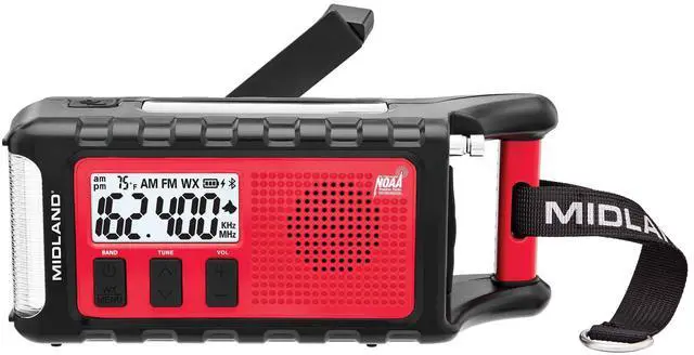 POWER SOURCES: SOLAR PANEL - Simply recharge the internal lithium-ion battery with direct sunlight. HAND CRANK - Recharge the radio during a power outage or anytime away from a power source. ^^ BLUETOOTH STREAMING - Everyday utility meets emergency functionality with the ER310PRO. Connect to your phone with Bluetooth and listen to your favorite music while you wait out the storm, camp, spend time outdoors or anytime on the go. ^^ NOAA WEATHER SCAN + ALERT - NOAA Weather Scan will automatically scan through 7 available weather (WX) band channels and locks onto the strongest weather channel to alert you of severe weather updates. ^^ EMERGENCY FLASHLIGHT & RESCUE DOG SIREN - The SOS FLASHLIGHT BEACON flashes Morse code and the Bright CREE LED (130 Lumens) can be used to signal for help. The siren assists search and rescue teams in locating individuals.