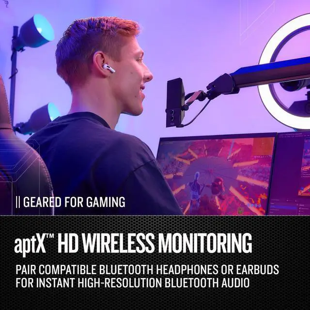 Elevate your content with the M2 STREAMSTAR USB microphone. A 16mm precision electret condenser combines with 24-bit/192 kHz digital resolution for exceptional voice clarity. The revolutionary Bluetooth gateway unlocks low-latency wireless PC audio playback. Pair any set of Bluetooth earbuds or headphones directly to the mic for wireless listening without distracting lag. Instantly upgrade your voice with studio-grade recording via an easy USB plug-and-play setup.