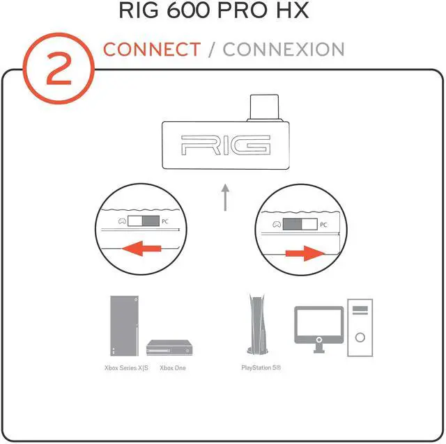 SELECT XBOX OR PC: This replacement wireless adapter has a slide switch for the user to select Xbox console mode or PC mode (Also works with PlayStation PS4 and PS5 when switch set to PC mode, and used with RIG 600 PRO HX headset only. ) ^^ COMPATIBLE ONLY WITH RIG 600