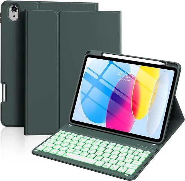aoub Keyboard Case for iPad 11th 10th Generation 11 inch (A16) 2025/2022-7 Color Backlit Wireless Detachable Keyboard, Stand Folio Cover with Pencil Holder for iPad 10th Gen 10.9 inch, Dark Green