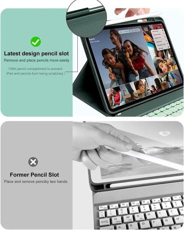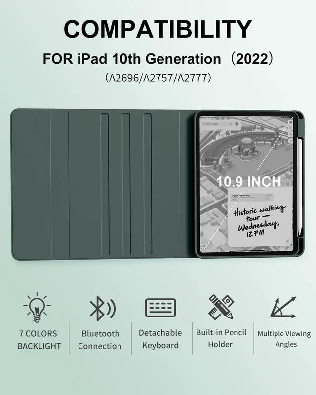 [(Detachable 7 Colors Backlit Keyboard)] The backlit keyboard for iPad 11/10 case has 7 colors, with the optional backlight mode one color at a time or 7-color breathing backlight, imagine yourself typing smoothly in the dark even when using it at night. The mechanical scissor keys have a rebound function to reduce noise and are comfortable even for long typing. The ke