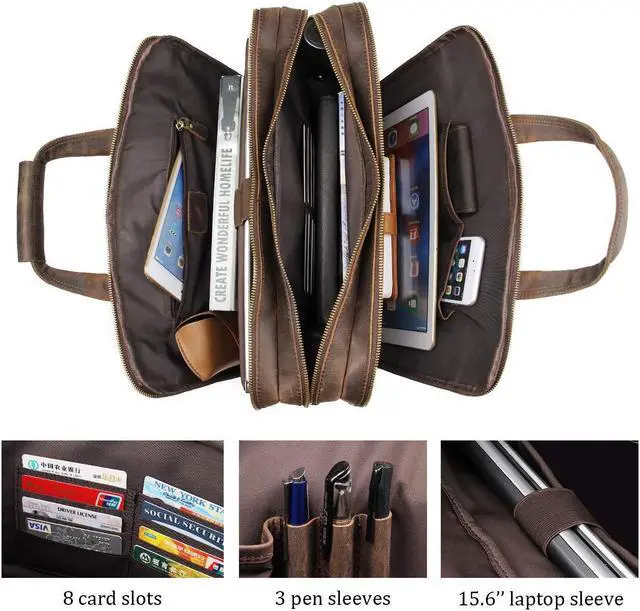 Material: 1. the leather: this Mens briefcase is made of 100% full grain leather. 2 . the zipper: We use only YKK zippers to ensure quality and reliability. 3. the Hardware: we use the one-time casting shaping, not splicing workmanship, we can ensure its durable for long time . 4. the lining: made of soft cotton cloth.