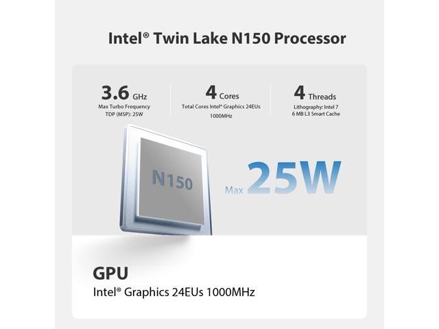 [(Smooth & Light weight)] Beelink Mini PC comes with Intel Twin Lake 4-Cores N150(up to 3.4GHz). This mini pc is suitable for Zoom meetings/Skype, allows to run Office, PS, surf the internet and watch stream video at the same time. The Mini Computer measures only 115 x 102 x 41mm, which is ideal for diverse usage scenarios such as office, online education, entertainment, industry, etc