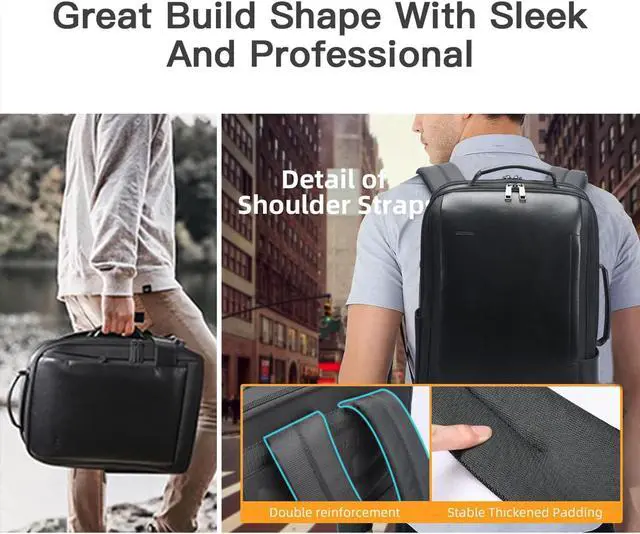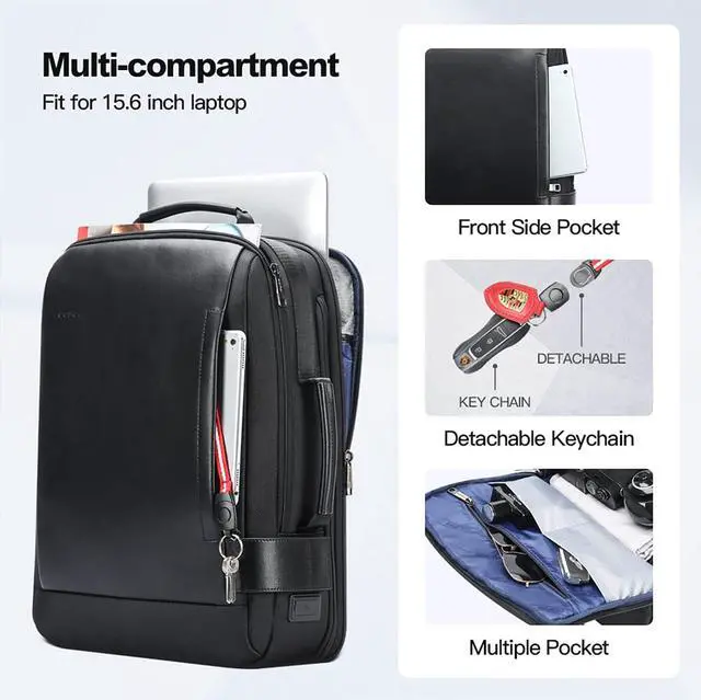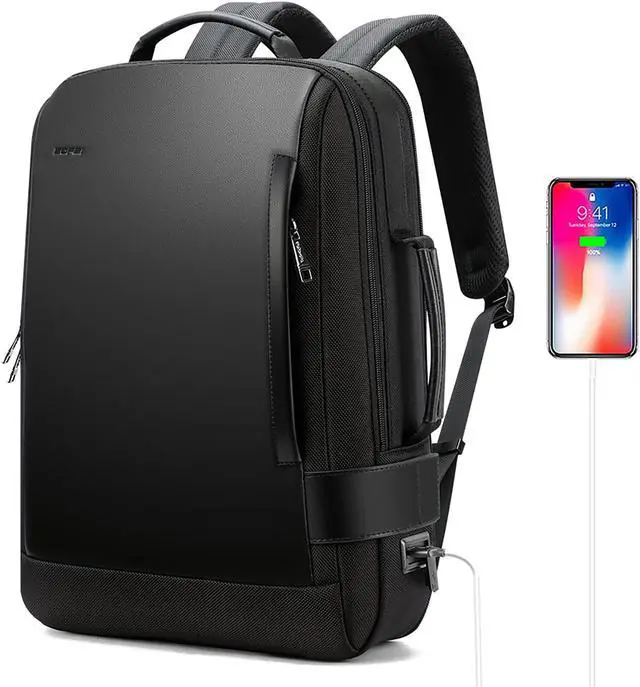 BOPai Business Smart 15.6 Inch Laptop Backpack Convertible Expandable Anti-Theft USB Charging Multi-Functional Travel Professional Work Office Men Commuter Large Black With Bottle Holder Waterproof
