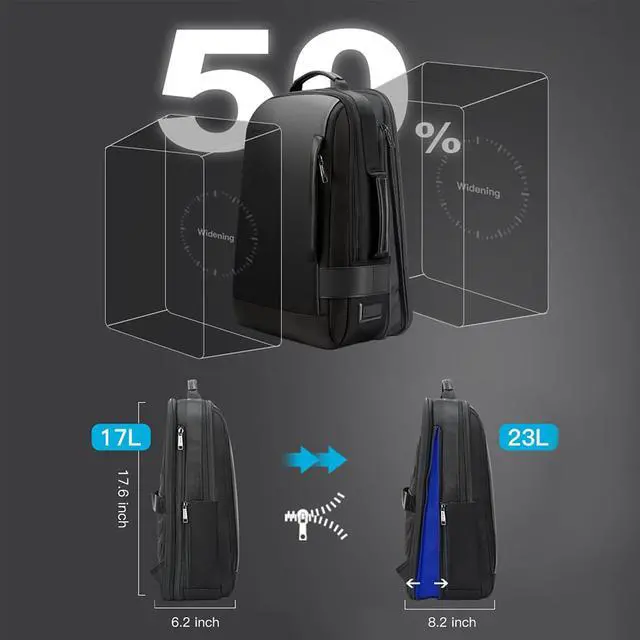 INTELLIGENT INCREASE DESIGN - This backpack has smooth zippers on the back side. Once pull on the intelligent zipper, the invisible compartment will show up and equipped with extra 50% of space. Best choice for short journey and easy your daily life.