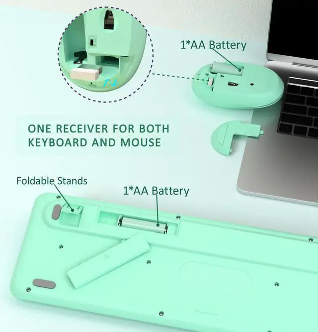 With On/Off and Smart Saving Function: The wireless keyboard and mouse has on/off switch and auto power saving mode, allowing you to save battery life when the keyboard mouse is not in use. Both requires 1*AA battery (Note: not included in the package)