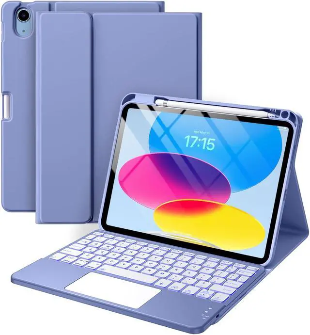 Harvopu Compatible for iPad 11th 10th Generation Case with Keyboard, Folio Cover with Pencil Holder, Multi-Touch Trackpad, 7 Color Backlit, Detachable Keyboard for iPad (A16) 11th/10th Gen (Blue)