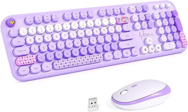KNOWSQT Wireless Keyboard and Mouse Combo - Lovely Purple Rainbow Full-Sized Typewriter Colorful Keyboards, Round Keycap USB Plug Play Retro Cute Keyboards for Windows, Laptop, PC, Desktop, Computer