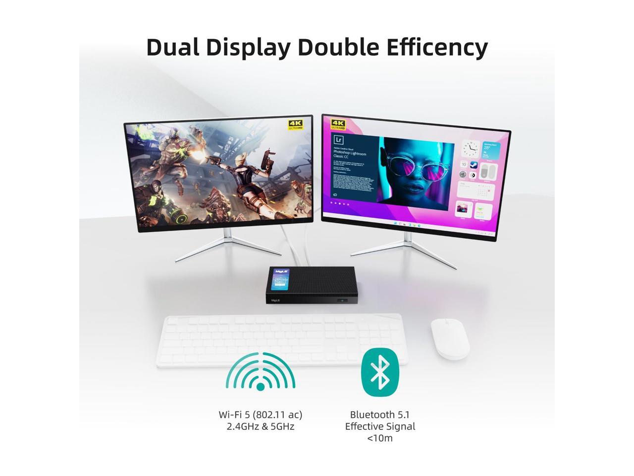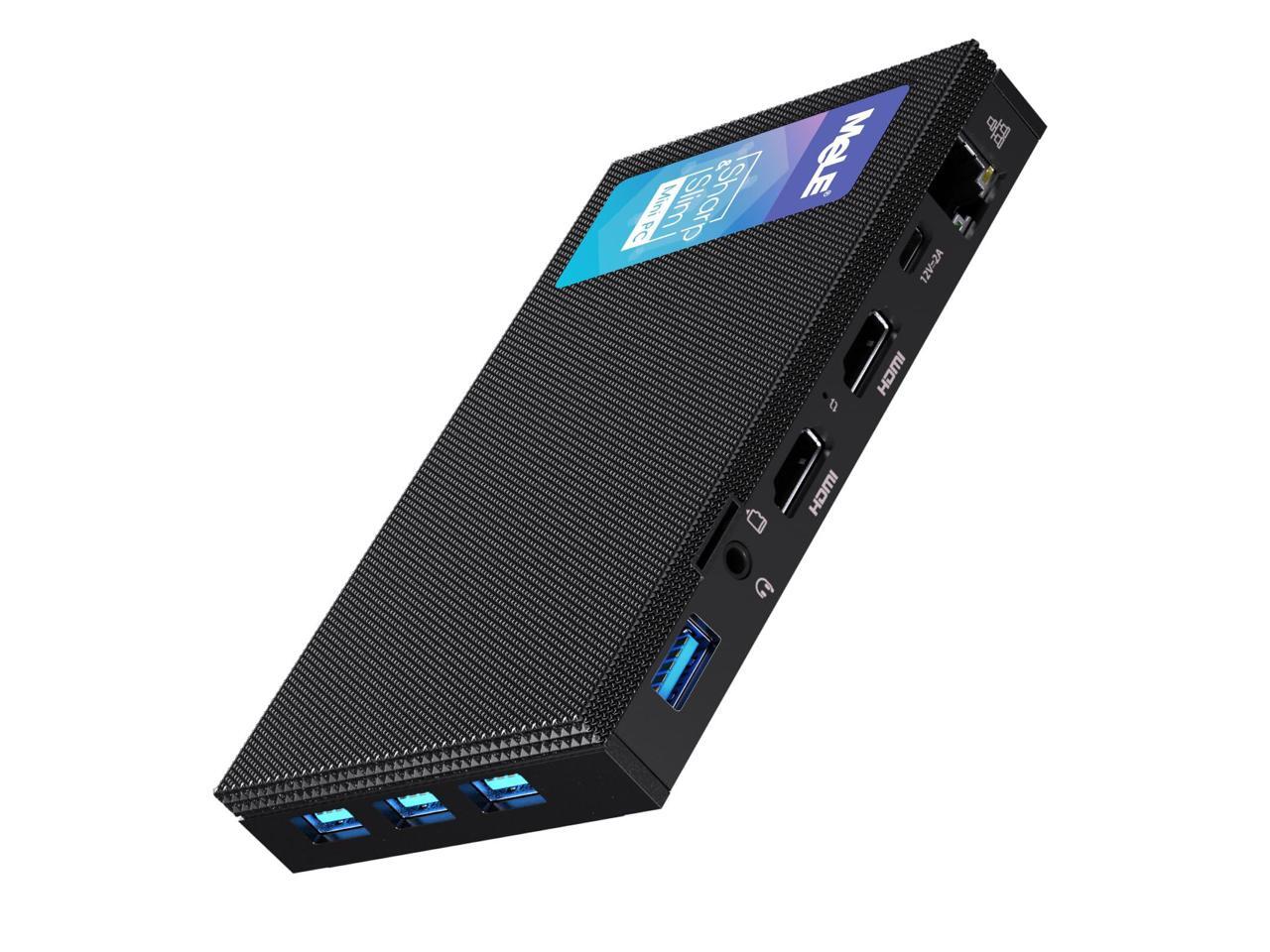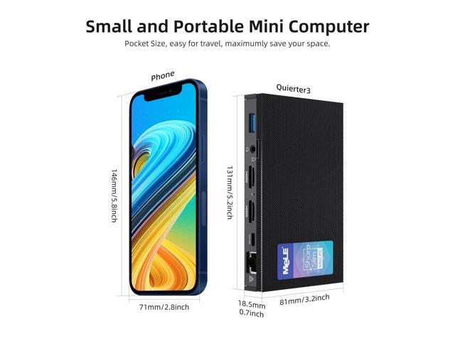 - [(Faneless, Pocket Size and Portable Design)] Coming with a fanless technology with 0dB noise that offers a silent and comfortable experience when working. The palm-size designed computer can be put into a pocket and easy carry out for a business trip. Besides, the desktop pc comes with a