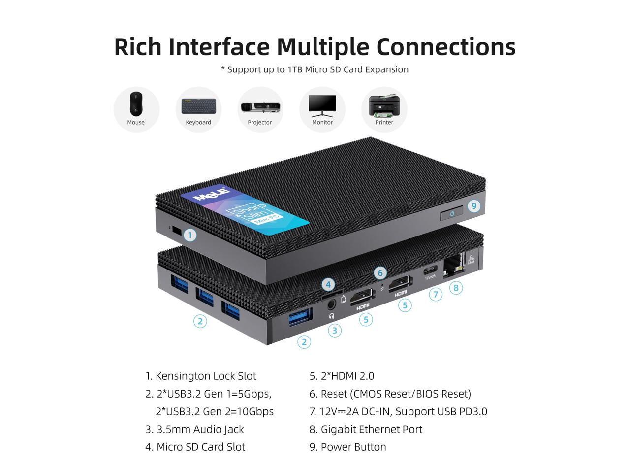 - [(Memory and Storage,Larger Capacity Expandable)] Built-in 8GB LPDDR4 RAM, 256GB storage, you can also replace the internal M.2 NVMe 2280 SSD to upgrade the storage to 4TB (excluded). It also comes with a Micro SD card slot separately to expand the storage up to 2TB.