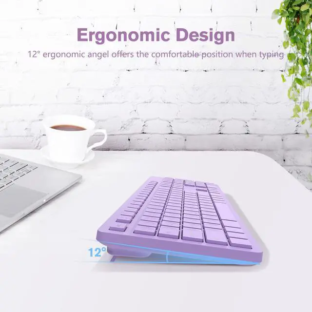 LeadsaiL Purple Wireless Keyboard, 2.4GHz Full-Sized Ergonomic Computer Keyboard, Cordless Noiseless Keyboard,12 FN Shortcuts for Windows MacOS Laptop Computer