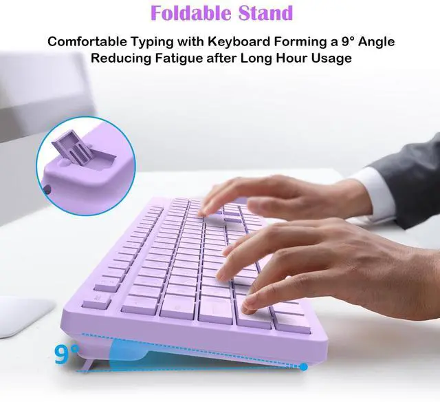 FULL-SIZE KEYBOARD WITH ERGONOMIC FOLDING STAND: Enjoy comfortable typing on a full-size QWERTY US layout keyboard designed to minimize errors. The integrated folding stand provides optimal wrist support at a thoughtful angle, effectively reducing muscle strain during extended use. ^^