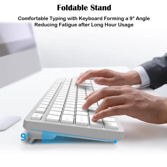 All-Day Comfort: LeadsaiL wireless ergonomic keyboard features adjustable tilt legs to customize height and angle, reducing wrist strain during long typing sessions. The full-size layout includes a numeric keypad and 12 multimedia shortcut keys (play/pause, volume control, email, etc. )streamlining your workflow and boosting productivity. ^^ Stable and Hassle-Free