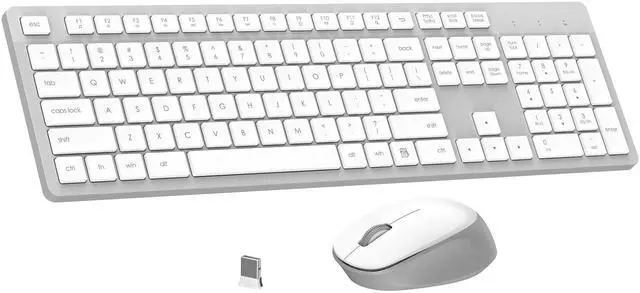 Wireless Connection: Both the keyboard and mouse operate via a single USB receiver (CONVENIENTLY STORED IN THE MOUSE), and can be used together or independently. With plug-and-play simplicity and no software required, the 2.4 GHz wireless technology ensures a robust connection up to 33 feet (10m) free from lag or interruptions. Enjoy seamless performance whether at home or in the office. ^^ Quiet Typing and