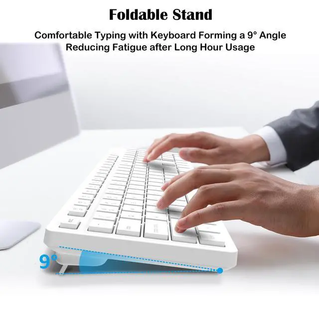 All-Day Comfort: LeadsaiL wireless ergonomic keyboard features adjustable tilt legs to customize height and angle, reducing wrist strain during long typing sessions. The full-size layout includes a numeric keypad and 12 multimedia shortcut keys (play/pause, volume control, email, etc. )streamlining your workflow and boosting productivity. ^^ Stable and Hassle-Free