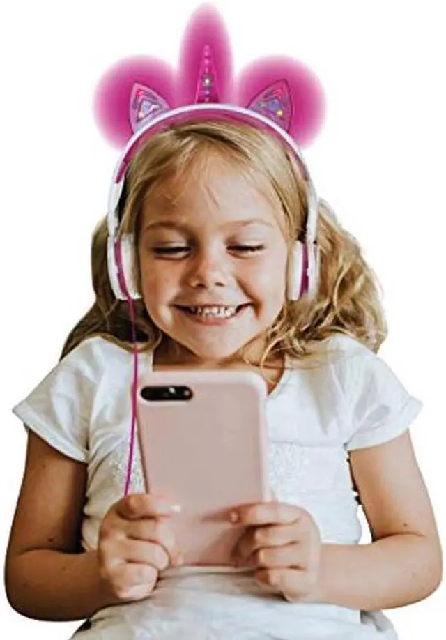Introducing SafeSounds Kids Headphones, specially crafted for your little ones' entertainment and safety. These headphones feature charming unicorn LED lights, adding a magical touch to their listening experience. Equipped with volume-limiting technology, they ensure that your child's ears are protected while delivering clear and immersive sound. Designed with comfort in mind, these headphones boast an over-ear design with soft, cushioned ear cups, providing a snug and cozy fit for extended wear. Plus, their foldable design makes them easy to store and carry, perfect for school, travel, or everyday use.
