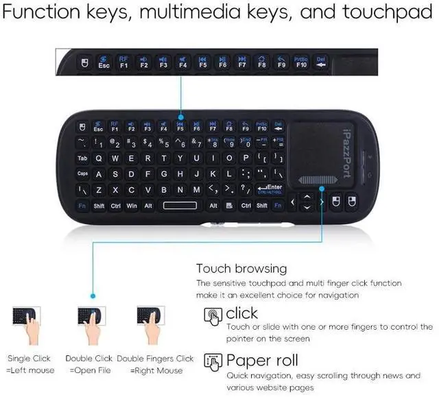 Compatible with Android TV Box, Raspberry Pi, HTPC, XBMC, PC, laptop without requiring a full-sized keyboard and mouse to remain connected. ^^ Advanced RF 2.4G wireless technology that delivers anti-interference and reliable connection. with USB receiver plug and play. enjoy up to 30Ft operating distance. ^^ Use it to easily input text, browse the internet and play games with a unified keyboard and remote. You never have to leave the couch. ^^ Support AAA battery and without backlight, easy to install and change (battery not provided in package).