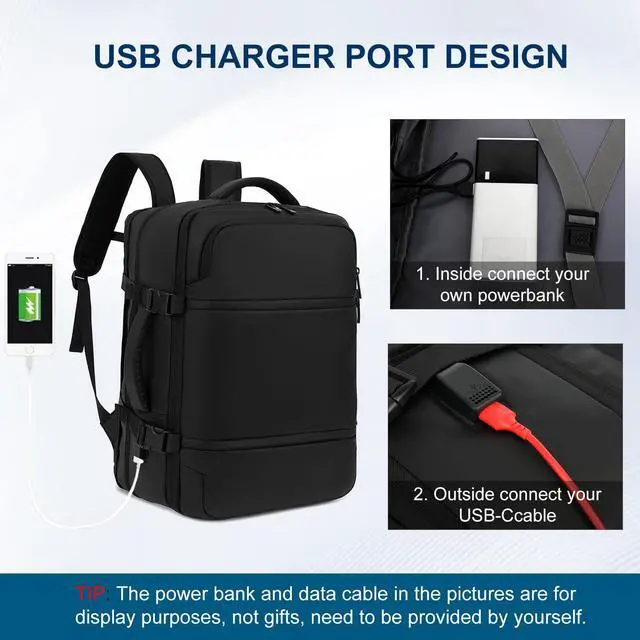 Convenient Usb Port: With built in USB charger outside and built in charging cable inside, this usb backpack offers you a more convenient way to charge your phone while walking. Please note that travel laptop backpack doesn't power itself and does not include a powerbank and cable, usb charging port only offers easy access to charge. ^^ Lots of