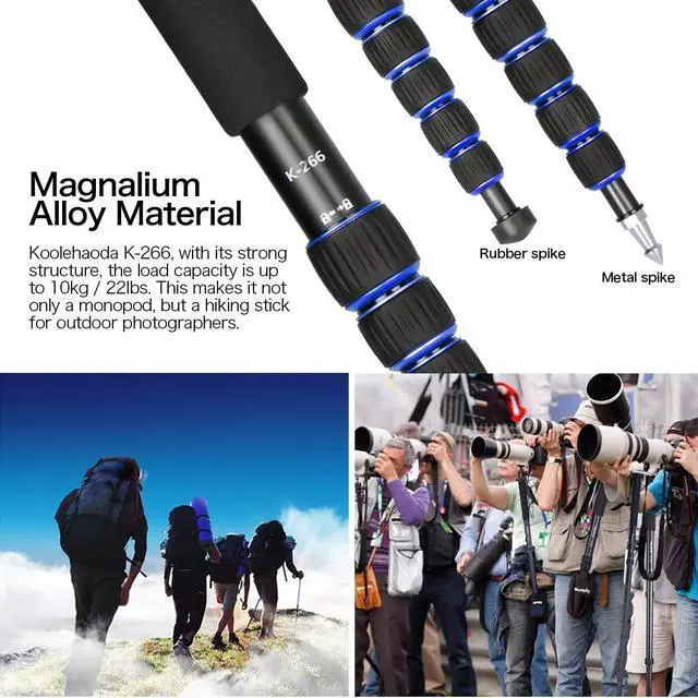 koolehaoda K-266, with its strong structure, the load capacity is up to 10kg / 22lbs. This makes it not only a monopod, but a hiking stick for outdoor photographers. 6-section extendable design, easy to carry and store.
