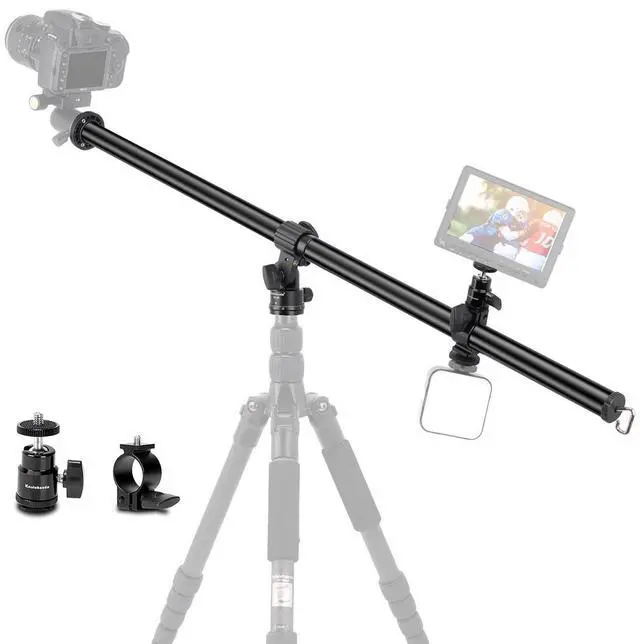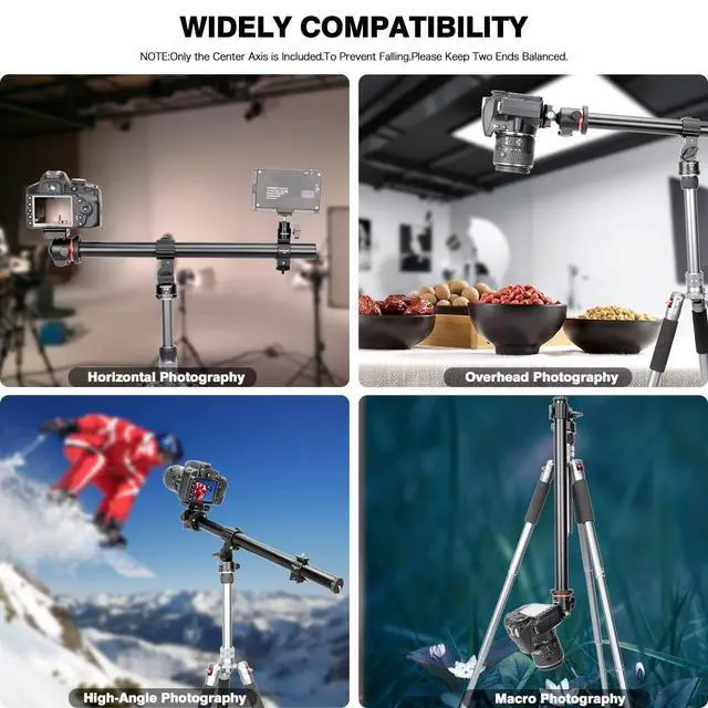^^ Wide Compatibility: Equipped with a double threaded screw adapter (1/4" and 3/8"), the tripod extension arm is compatible with most DSLR cameras, camcorders or ball heads. It can be mounted on most tripods with the standard 3/8" hole at the bottom of the rotating base. ^^ With a