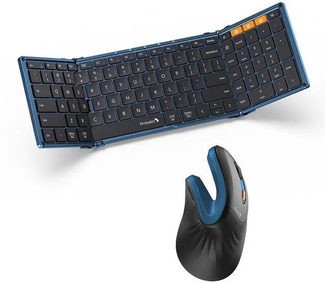 ProtoArc Foldable Bluetooth Keyboard, XK01 Folding Wireless Portable Keyboard with Number Pad, Full-Size Travel Keyboard for Windows iOS Android Tablet Smartphone Laptop PC - Dark Blue ProtoArc Ergonomic Mouse, EM11 NL Wireless Vertical Mouse, Ergo Mouse with Multi-Device, USB-C Rechargeable Mice for Windows, Mac OS, PC/Notebook/Laptop, Blue